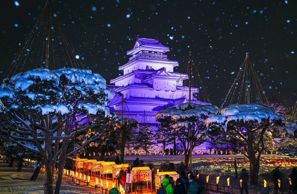 Tsurugajo Castle at night – Photo Credit: Fukushima Travel