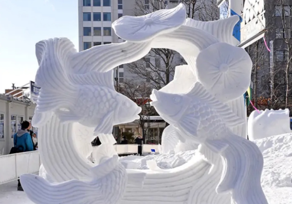 Hokkaido’s second-largest winter celebration, the Asahikawa Winter Festival, runs for about a week in early February, taking place at the same time as the Sapporo Snow Festival. It’s known for its enormous snow sculptures along the Ishikari River and smaller ice sculptures lining Heiwa Dori, where an international ice sculpture competition is held. At night, the displays are beautifully illuminated. Families can enjoy snowball fights, mini sledding hills, workshops, and even an ice bar, while the festival closes with a lively fireworks show. Some of Asahikawa’s past snow sculptures have even earned Guinness World Records for their incredible size and detail.