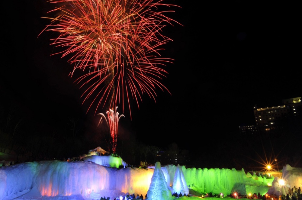 Illuminated Ice Sculptures with Fireworks – Photo Credit: Visit Hokkaido