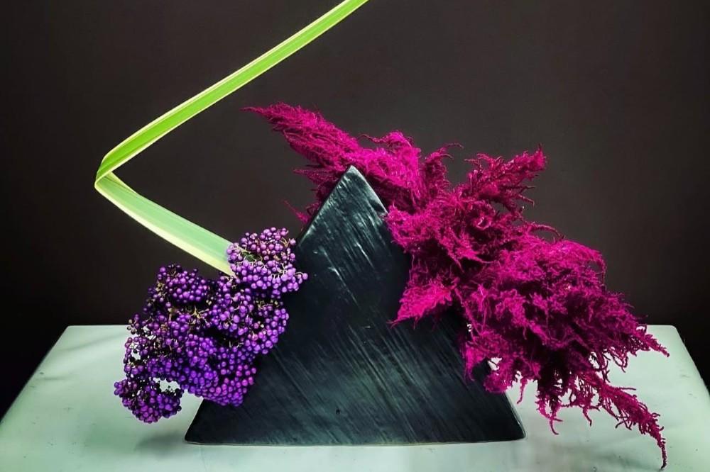 Colorful and artistic ikebana flower arrangement. Photo Credit: Daniel Patterson
