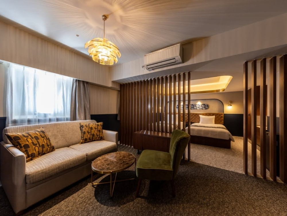 A look into the Residential Twin room, featuring Suruga’s interior craftsmanship. Photo Credit: Nakajimaya Grand Hotel