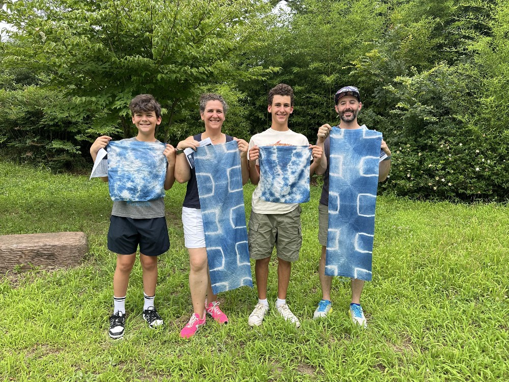 Showing the finished product after a dyeing experience. Photo Credit: Shoai Samurai Indigo Dyeing