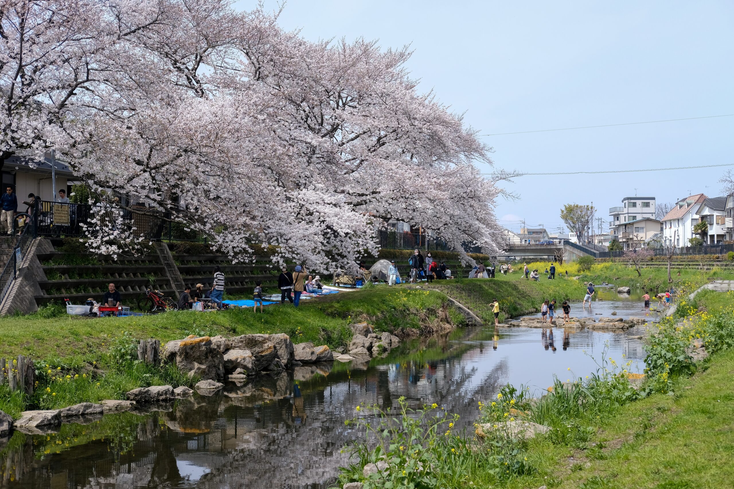 Only a ten-minute walk from Tama Station, the Nogawa River offers a wide, open space where cherry blossoms stretch along the water’s edge. This is a fantastic escape from the more commercialized viewing areas. Whether you are following the scenic walking paths or simply admiring the aesthetic of the overhanging branches, the riverbank provides a refreshing, local atmosphere for everyone.