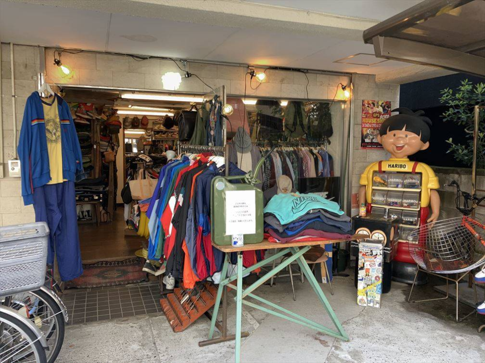 A tiny shop denoted by its row of gachapon machines and bead curtain, Green Pepe specialises in Showa era fare from the 70s and 80s, with an interest in Japan-produced items emulating Western pop influences. The shop offers a sizable amount of clothing, with an extra perk – some people who thrift in Japan have noticed a distinct lack of feminine apparel in their second-hand stores, an issue that you will not find in Green Pepe, which has a larger focus on women’s clothing. The shop’s stock isn’t limited to clothing, and you’re met with all manner of random trinkets the moment you enter, from porcelain to old memorabilia.