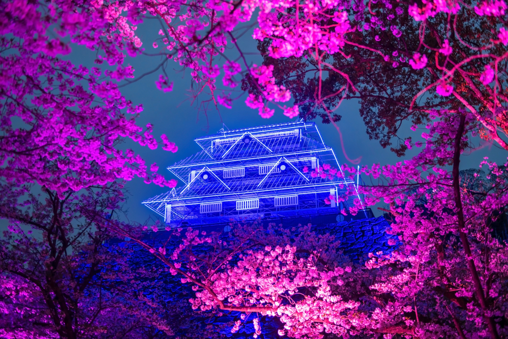Beautiful Sakura Illuminations at Fukuoka Castle Ruins in Fukuoka – Credit: Blanscape