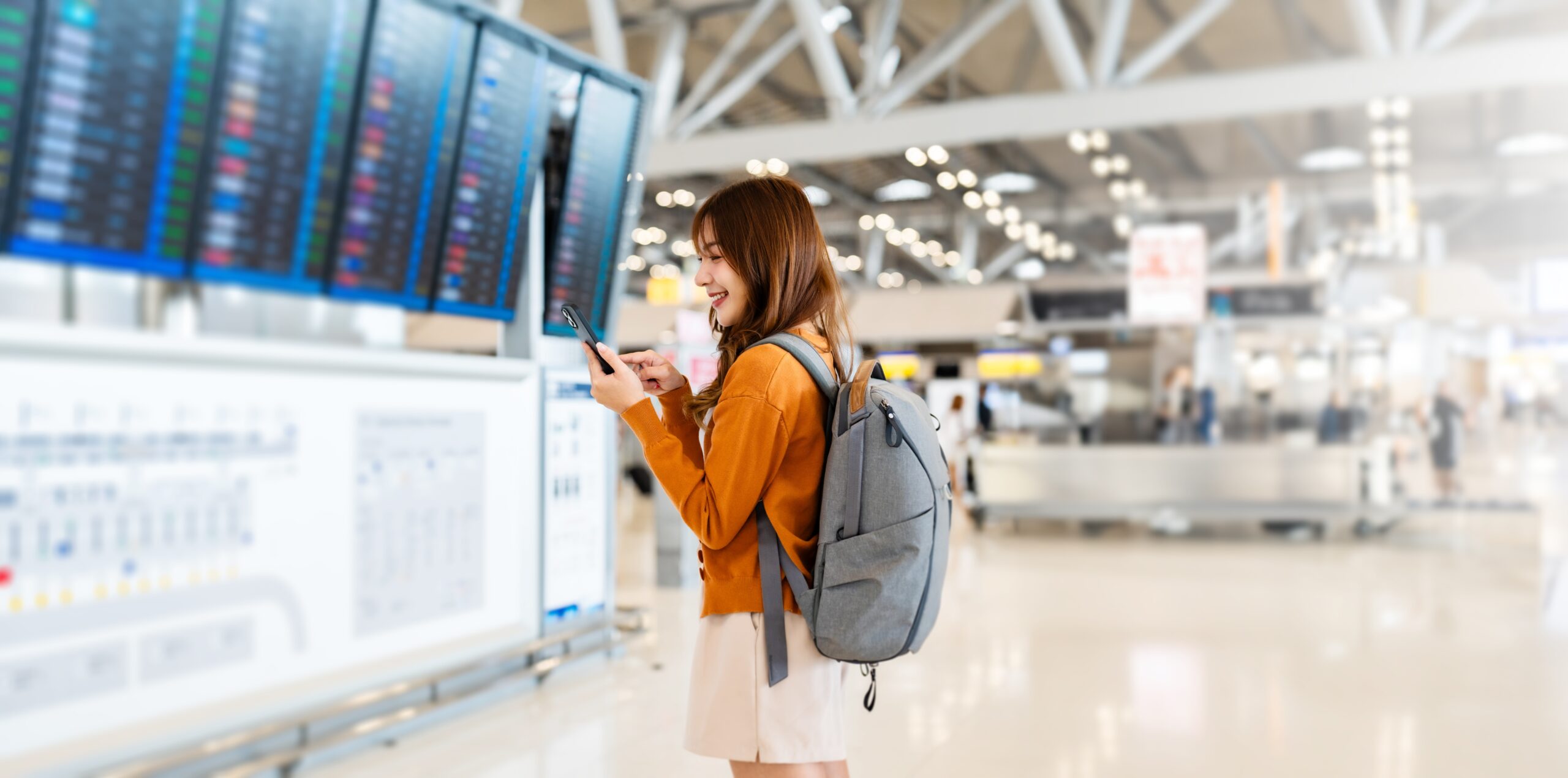 Traveler using their phone at an airport – Photo Credit: Monster Ztudio