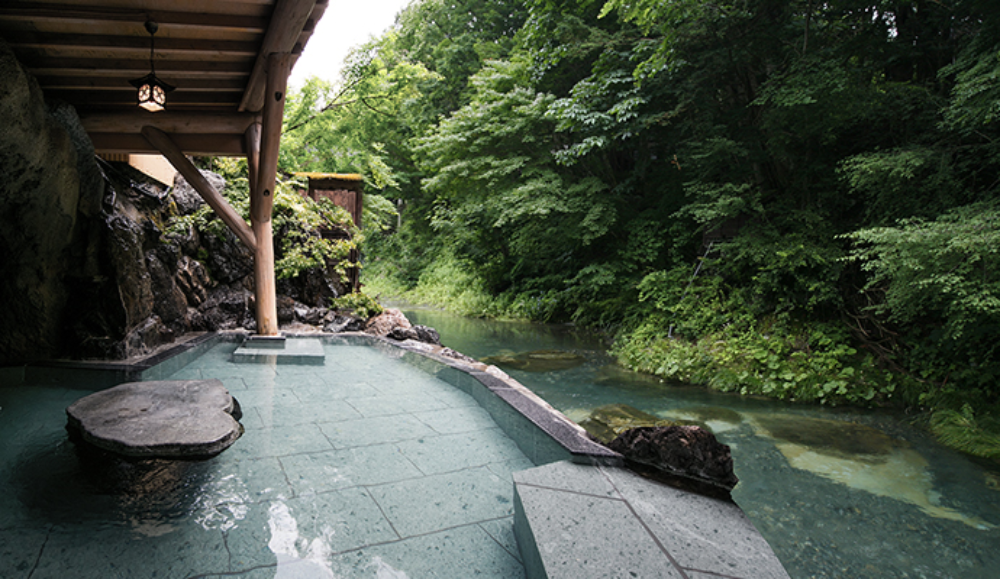 A riverside hot spring at Honke Bankyu – Photo Credit: Honke Bankyu