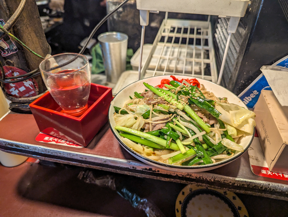 By 6 PM, the stalls were buzzing with life, filled with locals finishing work and curious visitors like us, all drawn in by the sizzling sounds and the tempting aromas. We wandered for nearly an hour, checking out the wide variety of offerings and walking off the ramen from earlier in the day. Just as our appetites returned, we stumbled upon a stall serving a mix of dishes. We grabbed a couple of seats and settled in for our first true Yatai experience.