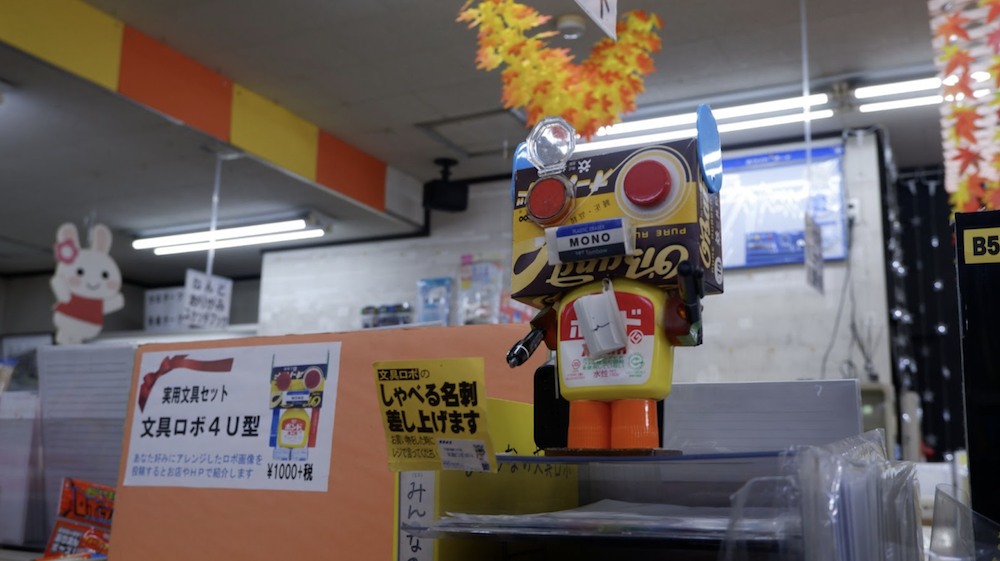 The ‘Stationery Robot’ is another fun feature I’ve added to the shop. It’s actually built entirely out of parts from famous, long-selling stationery brands that everyone in Japan grew up with! To be honest, it looks a bit clunky and goofy, but it’s a hard worker. When you walk past, its sensors kick in and it’ll start chatting away, greeting you, giving you the shop hours, or letting you know that we have extra stock in the back and can handle special orders. Sometimes it even tries out tongue twisters! It can’t actually hold a conversation (it just talks at you, haha), but it’s definitely KAWAII!