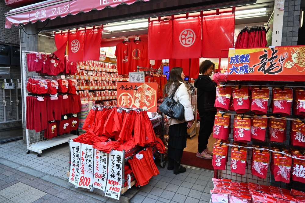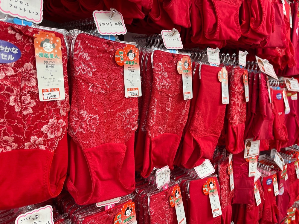 Because of this, red underwear is especially popular among the elderly. In Sugamo, Tokyo, known as the “Harajuku for the Older Generation,” you’ll find the original “Sugamo Maruji” shop, famous for selling these red Pants. Sugamo also has a popular Jizo-dori shopping street and several temples bustling with visitors to pray.