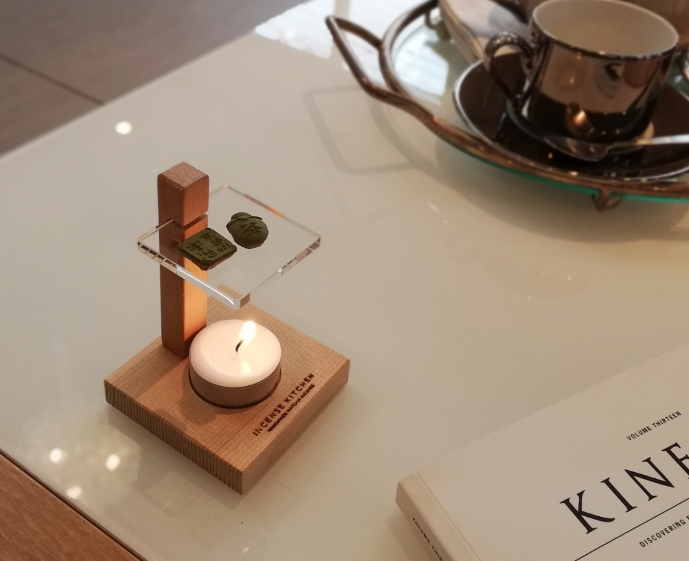 Matcha incense on an incense warmer – Photo Credit Incense Kitchen