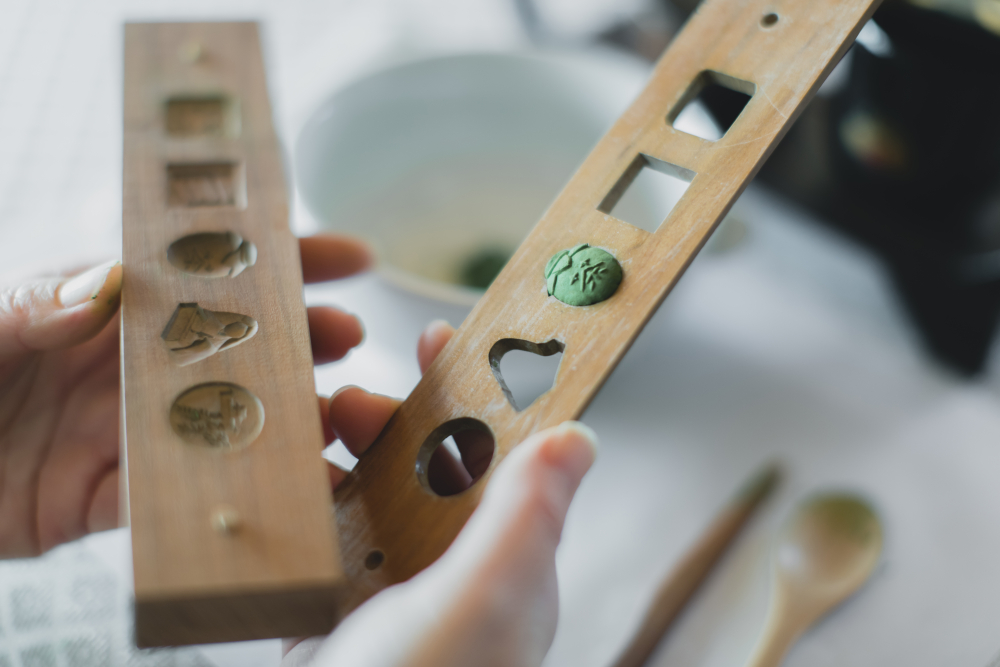 “Kyoto” and “matcha” are widely recognised overseas, but we realised that the name “Uji” had yet to gain widespread recognition. We therefore conceived the idea of conveying Uji’s appeal through the experience of matcha incense. (Indeed, instances exist where overseas purchasers of KOTOHA subsequently visited Uji to participate in the experience, demonstrating tangible results in attracting tourism.) Furthermore, matcha incense-making offers a unique programme allowing participants to experience Japanese culture through all five senses: scent, touch, and visual appeal. The moulds used, known as “wagashi moulds,” are traditional Japanese tools employed since ancient times for shaping confectionery.