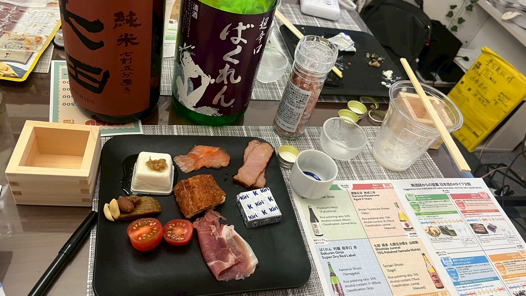 Sake tasting session snacks and sake – Photo by Manga Dojo Tokyo
