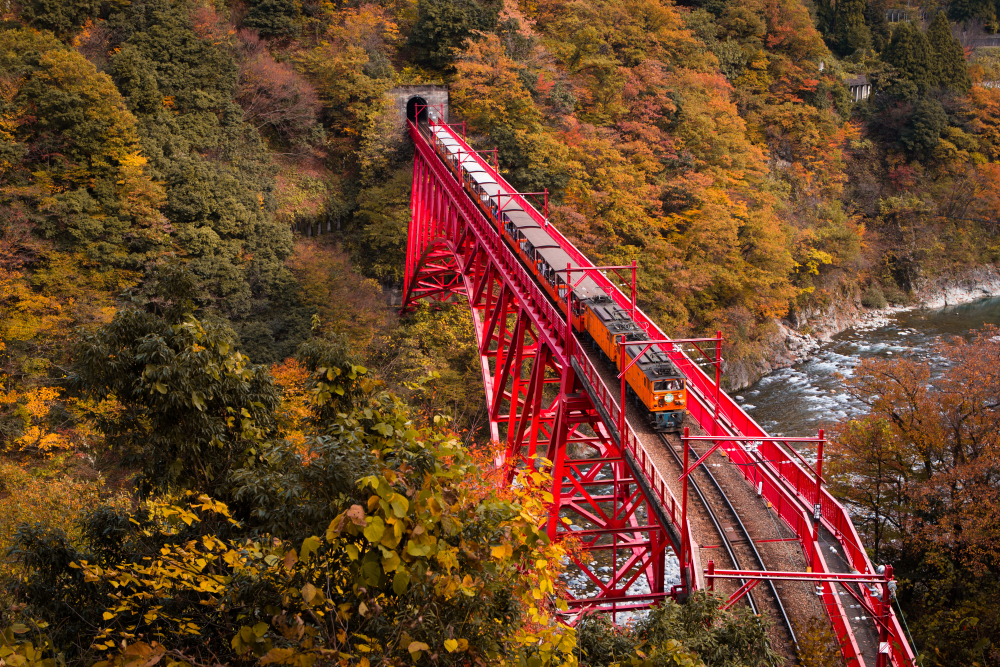 A new season is on the horizon, with the hustle and bustle starting to calm down as school starts up again, and the hot & humid air finally starting to cool off (hopefully). But while the thermostat may be slowly creeping out of the red, there will certainly be no shortage of the color covering the rest of the country. Just like how winter has snowy landscapes and spring has the streets lined with sakura, autumn brings with it long stretches of red & orange foliage for viewing – and what better way to do so up close than on a train? Or even better, seeing miles of it at once via a ropeway! This article will cover a short collection of some of the best journeys that will take you through Japan’s autumnal scenery in style.
