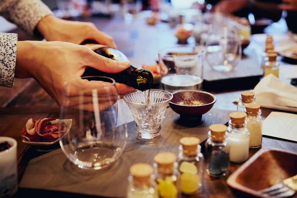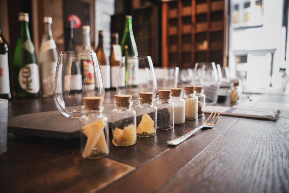 That said, we do offer one structured pairing: two unique spice or herb infusions designed to enhance a particular sake. This serves as an anchor point for sharing our philosophy on pairing, which revolves around three core principles. We won’t give everything away here, but it’s a fun and surprising way for guests to learn how to think about pairing at home — without needing to follow strict rules.