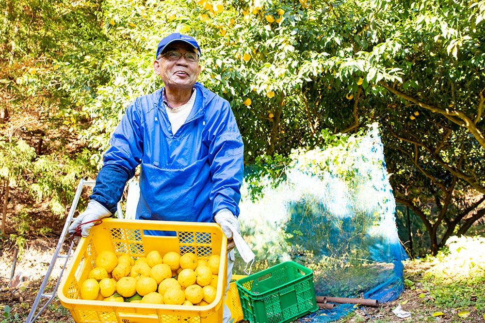 A Kawanehon farmer harvesting fresh yuzu – Photo Credit: Kawane Honcho Yuzu