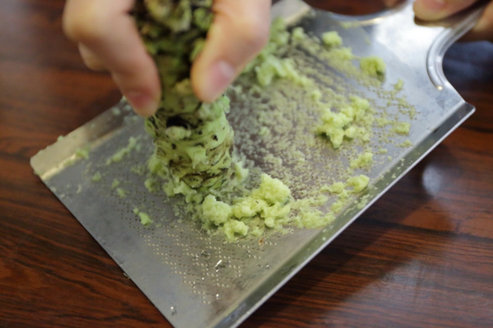 Fresh wasabi being grated by hand on a metal grater – Photo Credit: SHUN GATE