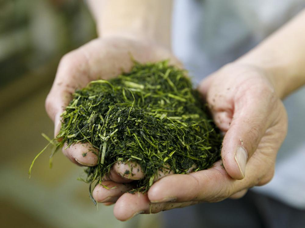Fresh green tea leaves cradled in two hands – Photo Credit: Visit Suruga
