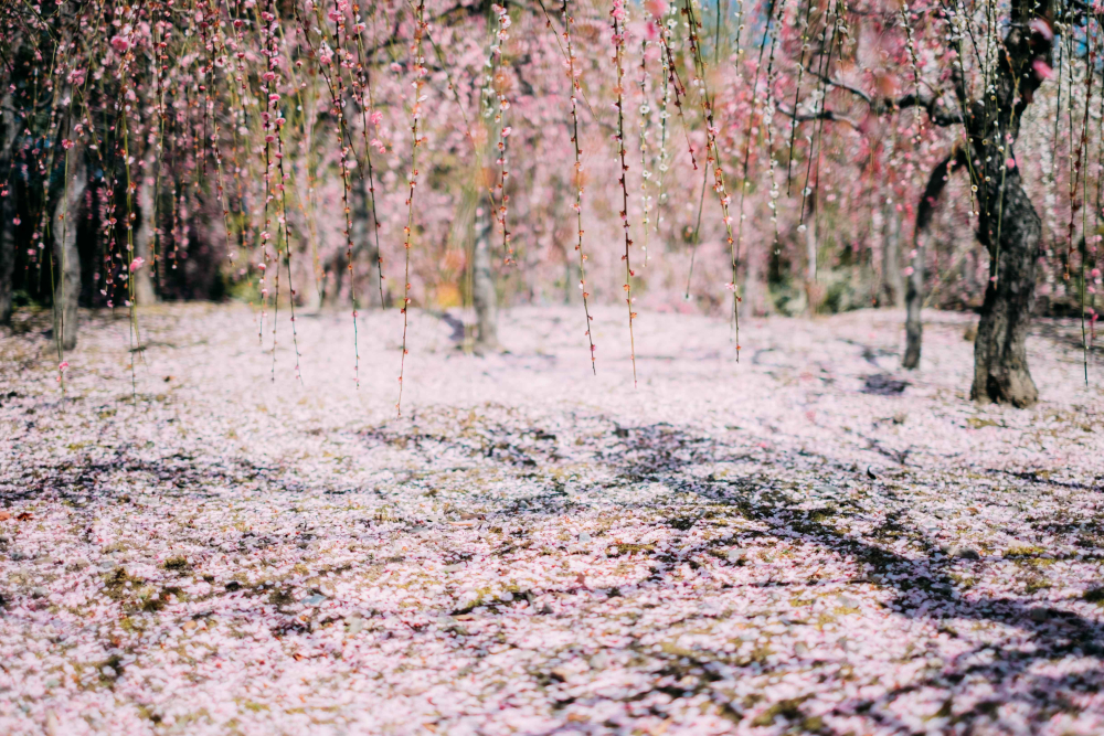 Weeping plum blossoms at Jōnangū Shrine – Photo Credit: yuwy
