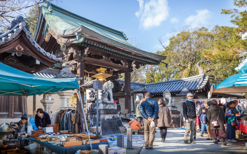 The Tenjin-san Flea Market is held on the 25th of every month at Kitano Tenmangu Shrine. It’s one of Kyoto’s biggest monthly outdoor markets, offering antiques, second-hand kimonos, traditional ceramics, fabrics, and street food. The lively market atmosphere makes it a favorite for bargain hunters and culture lovers alike.