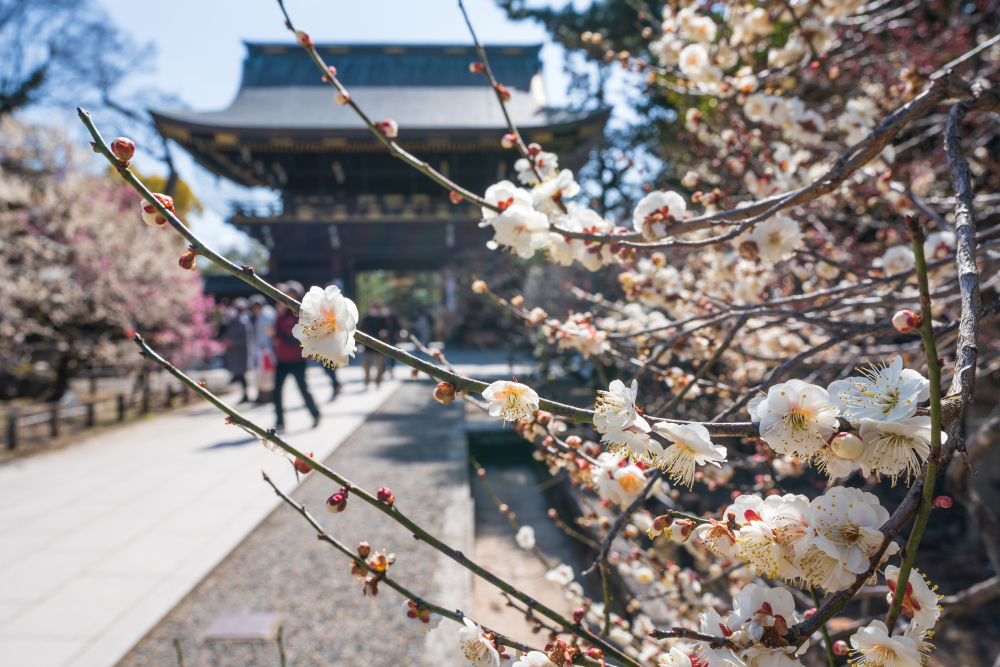 Plum blossoms signal the earliest arrival of spring in Kyoto. Kitano Tenmangu Shrine is famous for its extensive plum grove, where hundreds of trees bloom in shades of white, pink, and red. The atmosphere is calm and fragrant, offering a seasonal contrast to the city’s winter stillness.