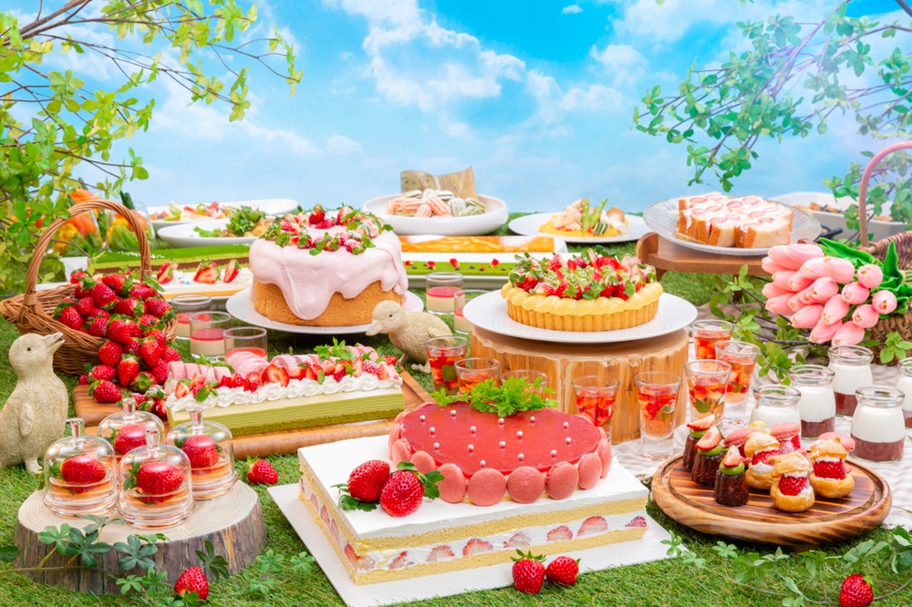 Strawberry dessert picnic under a bright blue sky – Photo Credit: Hotel Keihan