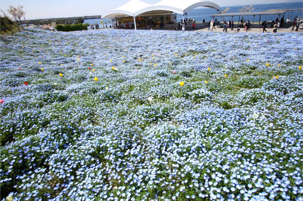 If you’re looking for peak spring vibes in Osaka, the Nemophila Festival is sure to provide you with just that. During the blooming season, the park turns into a sea of soft blue as around a million tiny nemophila flowers bloom all at once. It honestly feels like the sky decided to land on the ground for a few weeks. You can stroll through the flower fields with the ocean breeze in the background, snap unreal photos, grab seasonal snacks, and just soak up that easy, happy spring energy. It’s bright, it’s breezy, and it’s one of those places that makes you slow down and go, “Okay, wow… this is nice.”