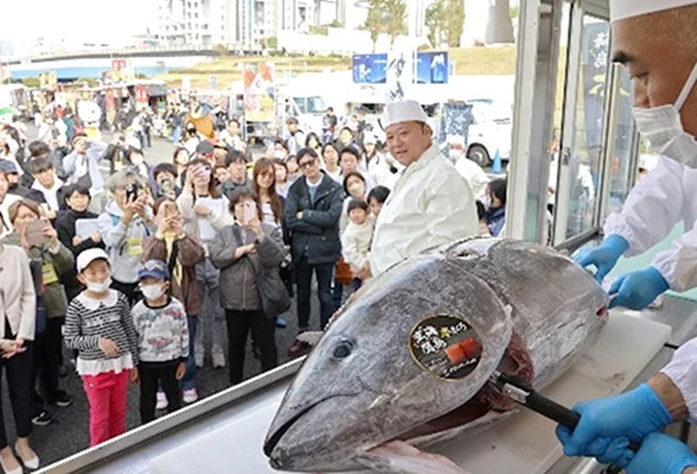 Live tuna cutting demonstration at a seafood festival – Photo Credit: SAKANA & JAPAN PROJECT