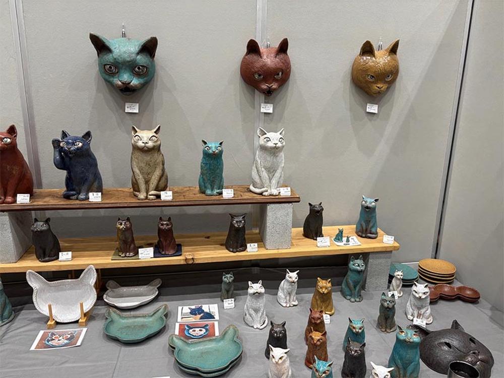 Colorful ceramic cat sculptures display – Photo Credit: Nyanko