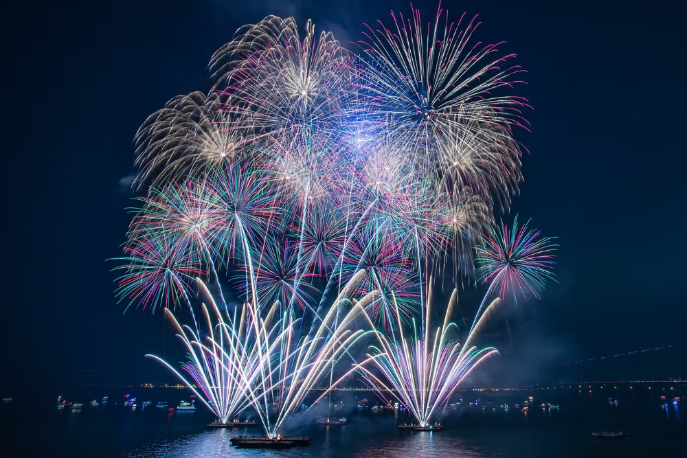 Beautiful Fireworks in Osaka Bay – Photo Credit: Osaka Hanabi
