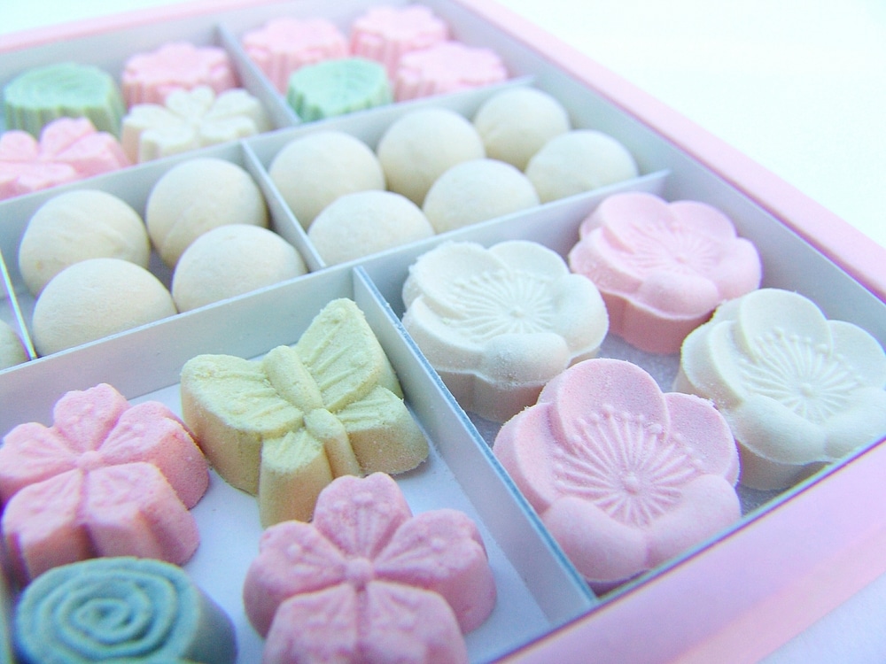 Once done, the wasanbon has a light pastel shade and is ready for making into wagashi candy. Making the candy is a relatively simple process. The finely powdered sugar is taken into a bowl, and some light liquid food colour is added to it. Once mixed thoroughly, the wasanbon is kneaded and made into a soft, smooth dough that is put into different-shaped moulds to set. This allows the wagashi sweets to get their unique look. Traditionally, the shape of the mould would vary according to the seasons and special occasions. Popular shapes include sakura flowers in spring, momiji leaves in the autumn, cranes, and even in the shape of the Seven Lucky Gods. In recent times, wasanbon sweets are available in a wide range of shapes, including Santa Claus-shaped ones around Christmas time, and of course, Japan’s favourite animal, the lucky cat, to give it a much wider appeal. In fact, the sweetness of wasanbon is no longer limited only to Japanese candy. Many bakeries and patisseries in Japan are using wasanbon to prepare Western-style desserts and sweets as well, including sponge cakes, madeleines, and other delicacies. Whatever the shape and form, wasanbon sweets make a perfect accompaniment to matcha tea or coffee.