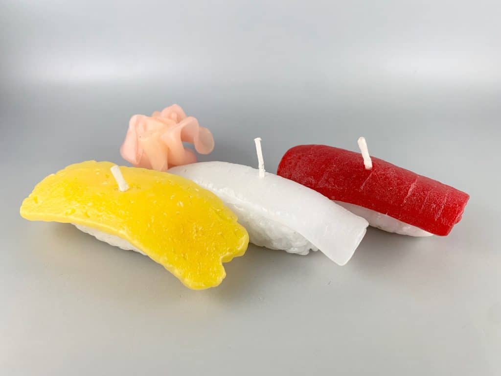 Sushi candles made in plastic – Credit: Yamato Sample